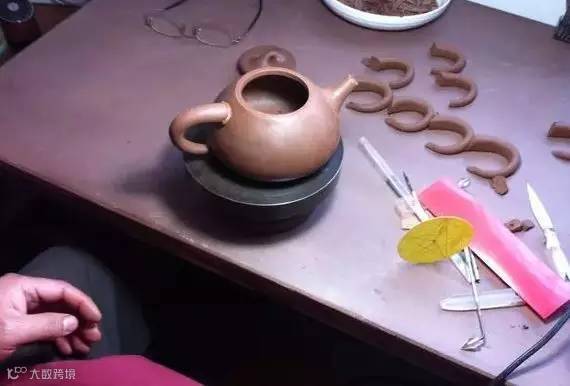 11、装(装嘴、把)。是我们宜兴方言习惯叫法,就是将已经准备好的壶嘴、壶把安装连接到壶身部位。