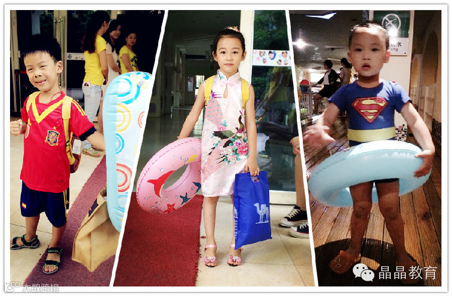 2014.7.18 19:00 离晶晶桃源学苑仲夏夜之梦—城堡泳池派对还有30分钟,可以看到孩子们已换好了泳装,带好了装备,齐聚在这座梦幻城堡里,小伙伴们闪亮登场咯~或是最炫民族风造型,或经典卡通人物造型,还有世界杯球衣系列,不论你喜欢热辣的夏威夷风情派对,还是疯狂沙滩派对,在晶晶桃源学苑这座梦幻城堡里都能得到最完美的诠释。