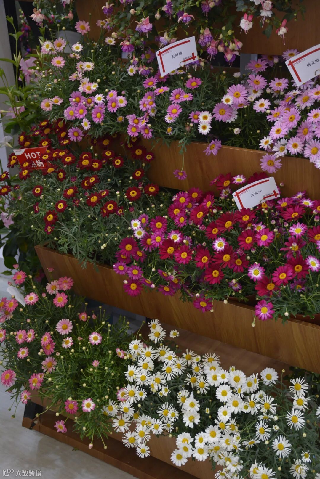 该区域展出作物:盆栽菊、花园菊。