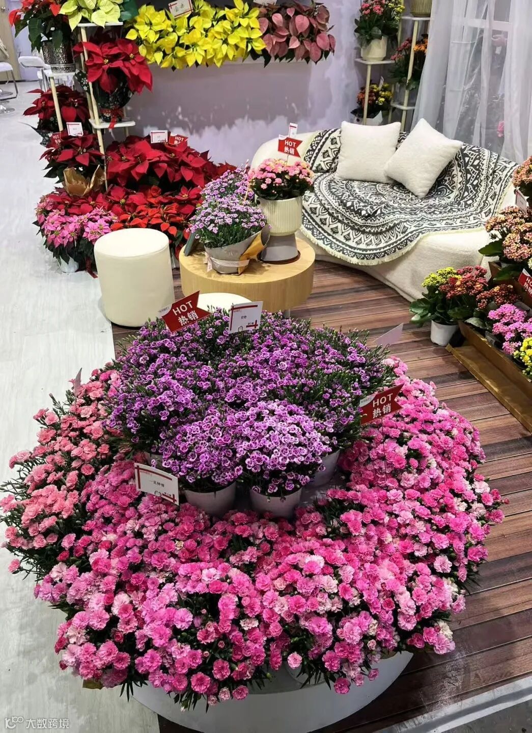 该区域展出作物:一品红、长寿花、康乃馨。