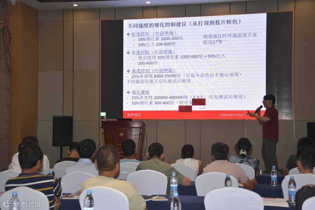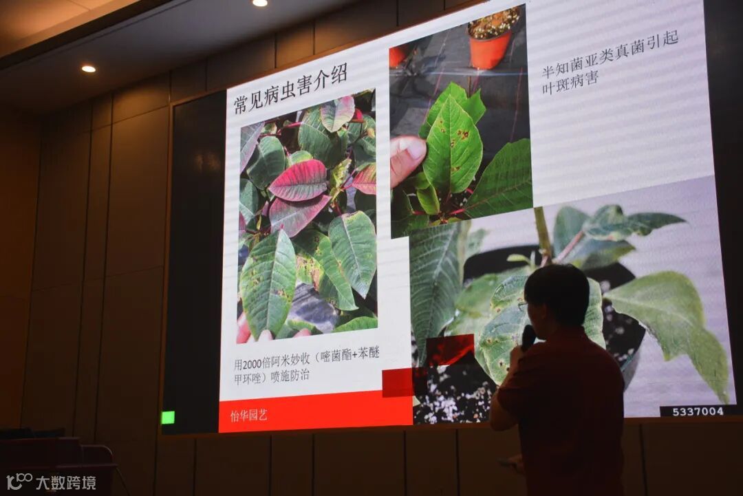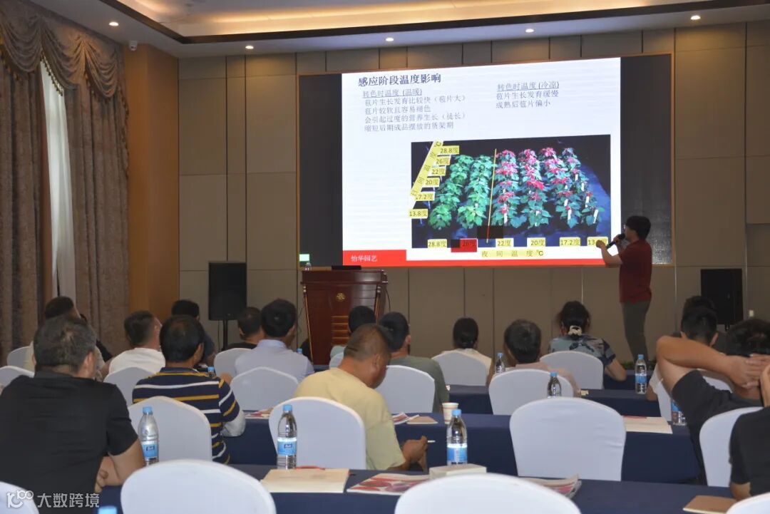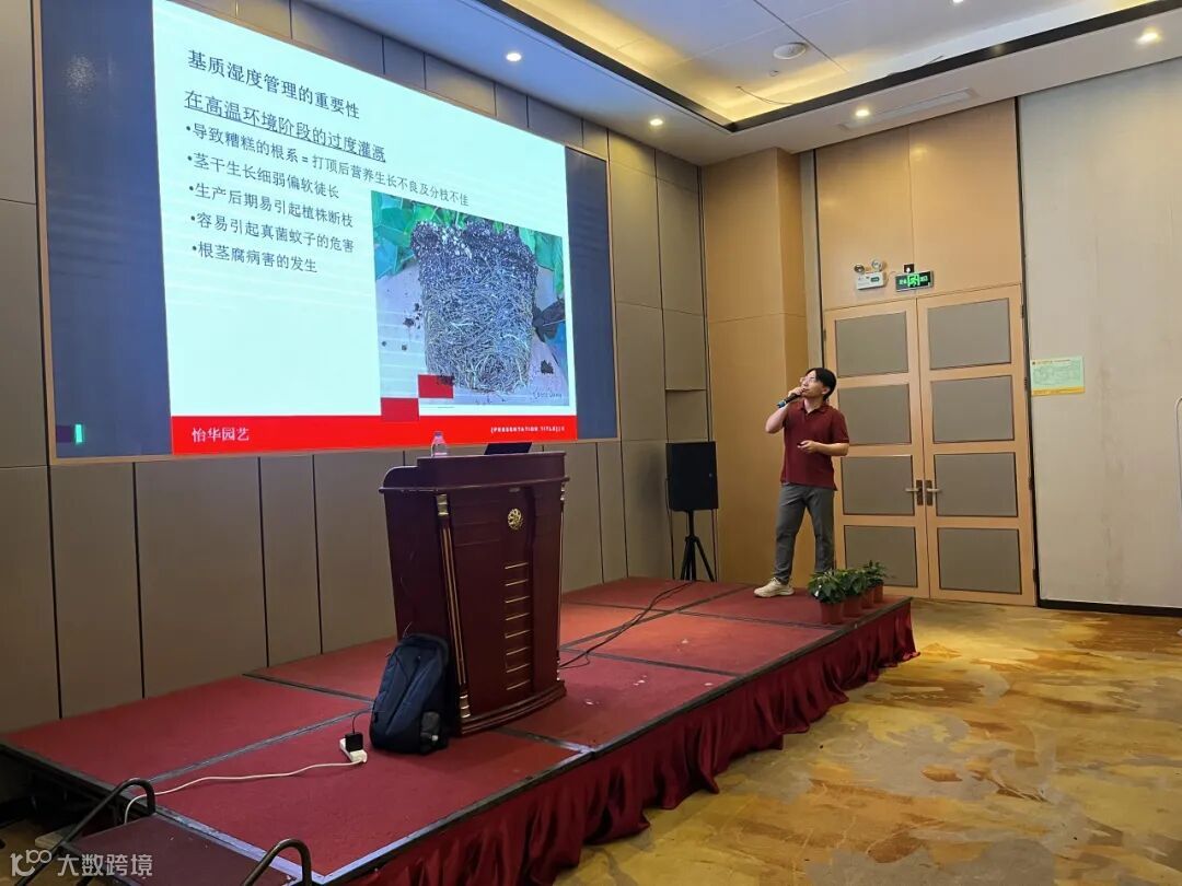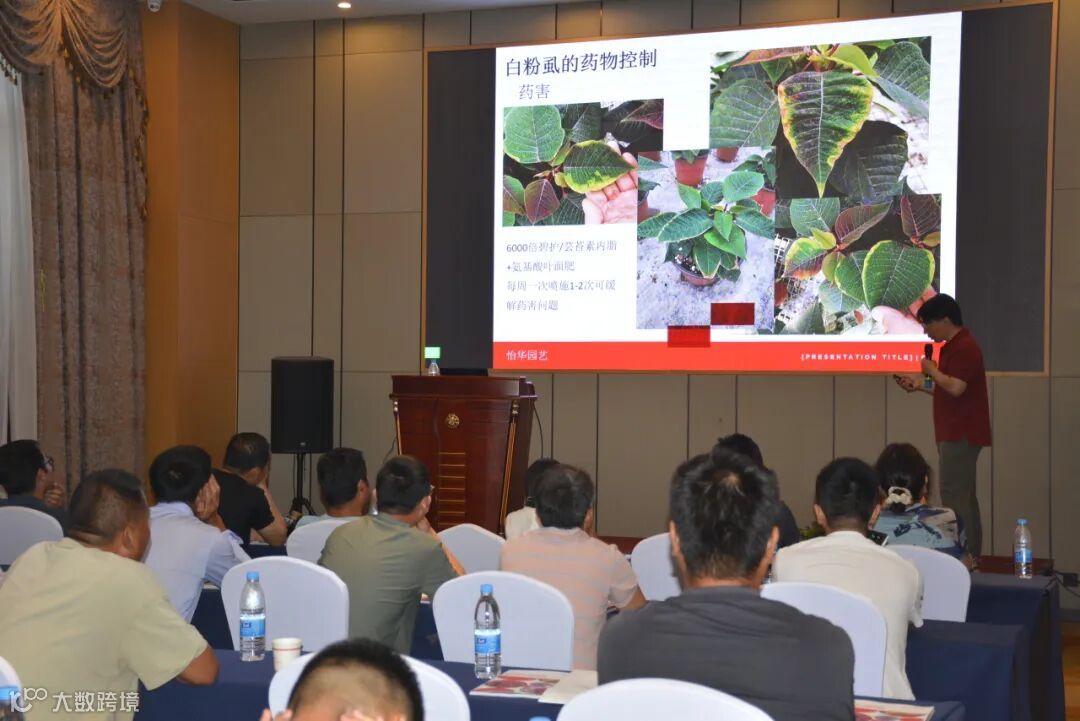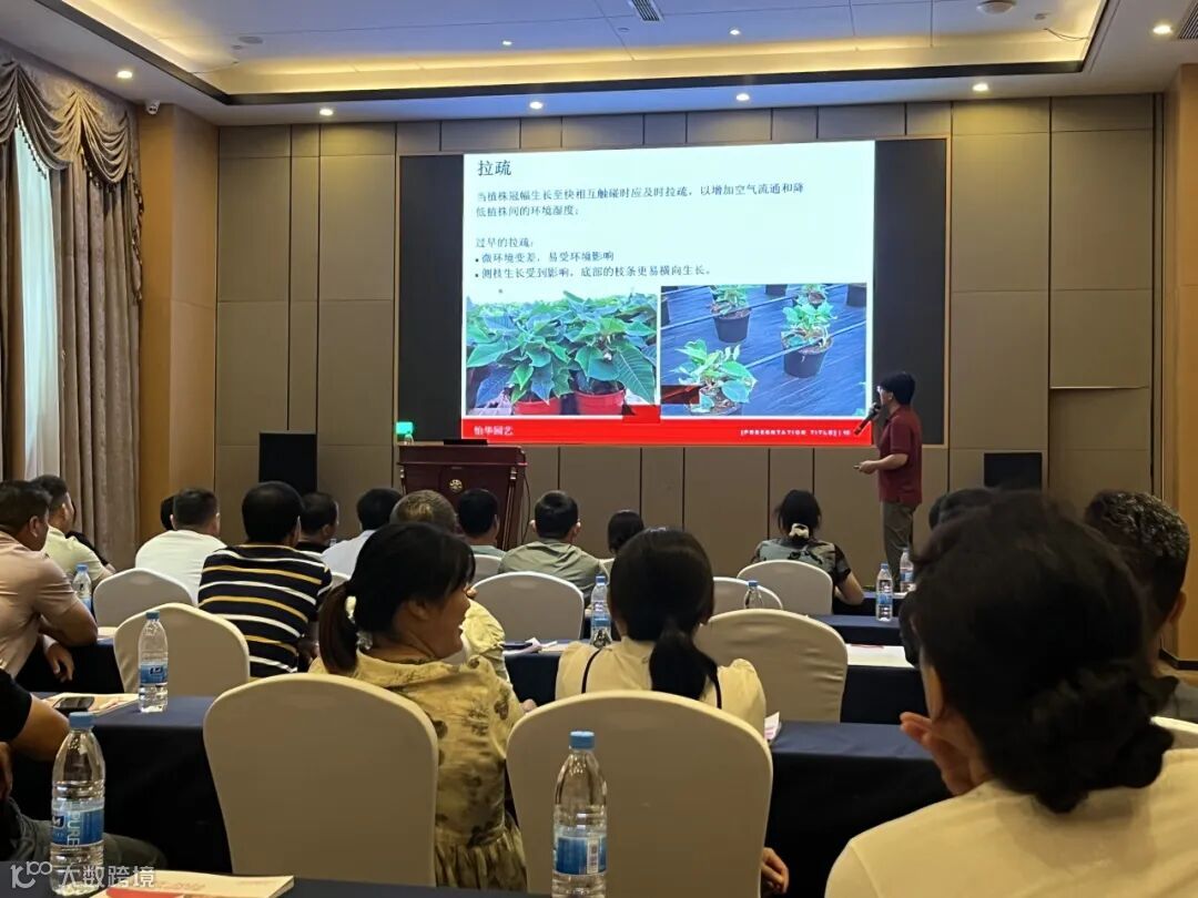 怡华的资深技术研发员邝雷老师作为本次会议的主讲嘉宾,给大家倾情分享了怡华最新、最全面的一品红全周期栽培管理方案。他的分享内容系统深入、紧贴实际痛点,涵盖了从种苗接收到成品上市的各个关键环节——