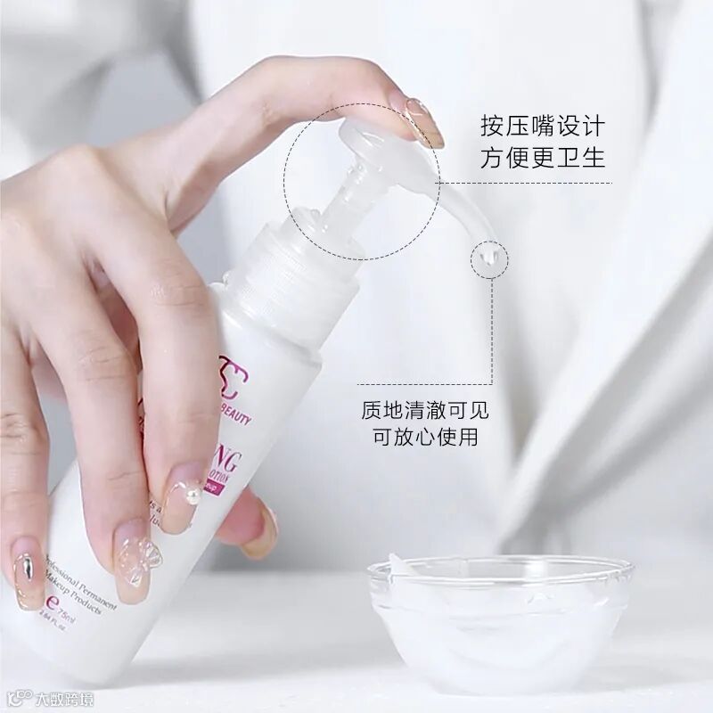纹绣前使用,可以温和清洁,去油脂死皮,疏通毛孔,促进色料渗透,让着色更稳。纹绣后使用,能抚平纹理,净化修护,促使结痂脱落后留色持久,留色更自然。