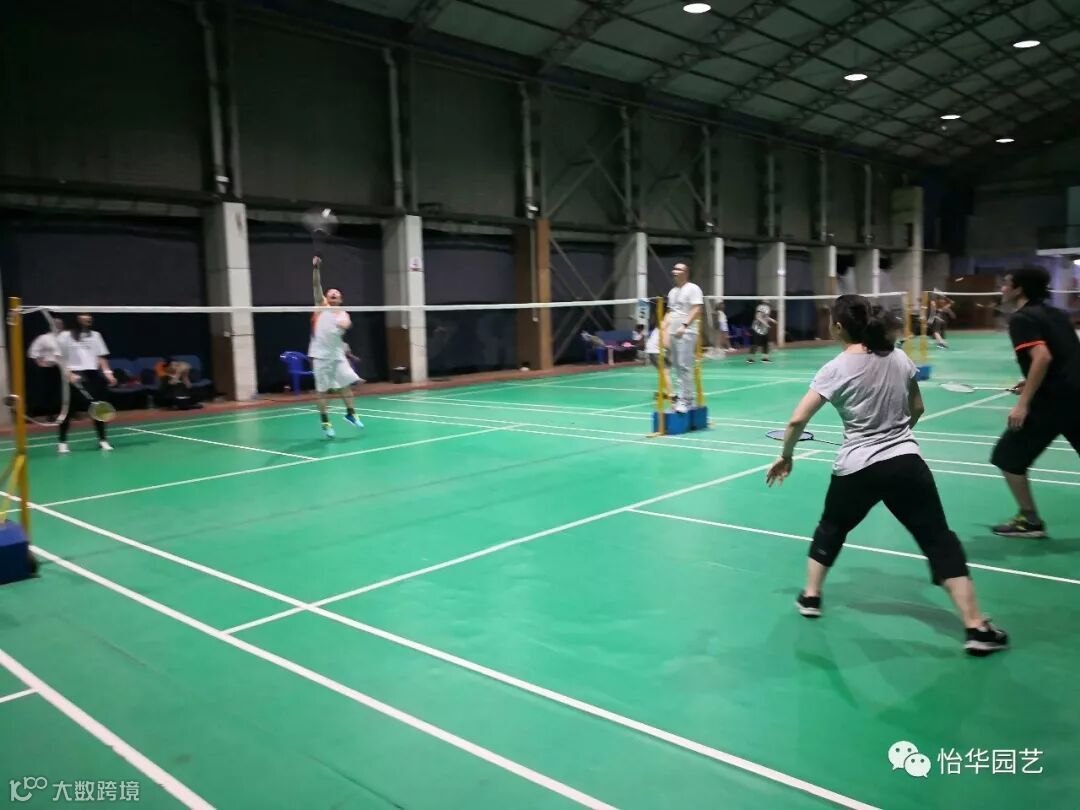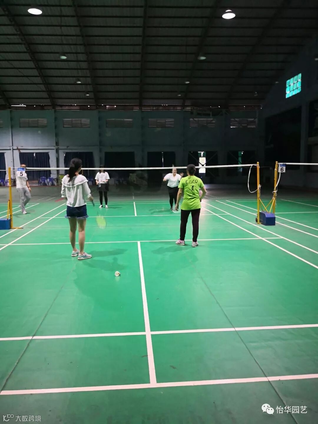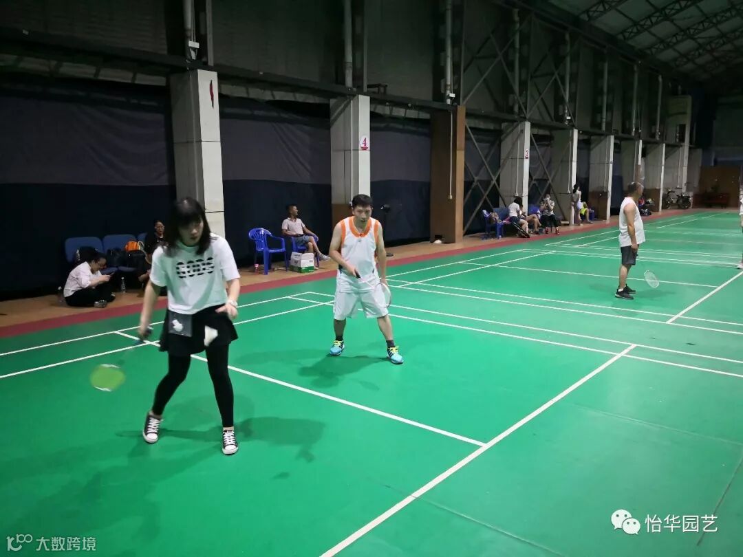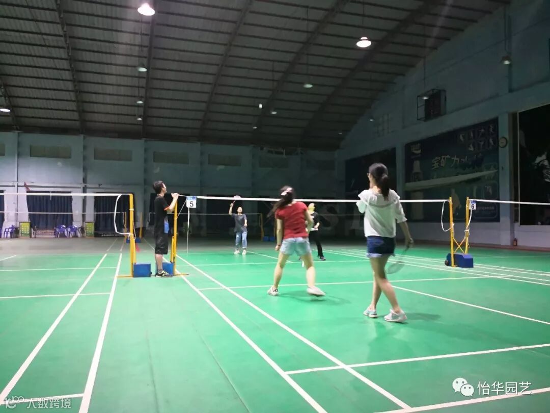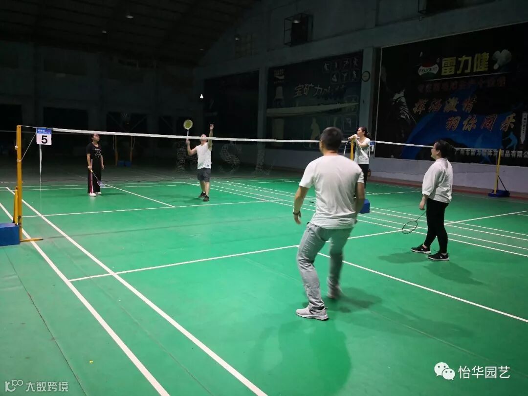 种苗部6人,盆花部9人,共15人参加活动,开了两个场地,进行2对2的对打,入场后,大家开始随机组队进行简单的热身活动。