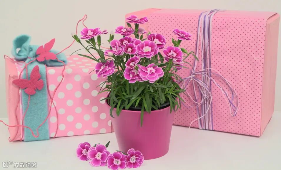 (1)选择盆栽康乃馨,不仅花期更持久,而且比切花更实用。
