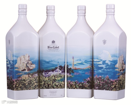 尊尼获加推出蓝牌臻酿新品—东风西蕴系列成都版,而这款全球首发的顶级威士忌的酒标正是刘正兴的新作《行走与丈量》,在这幅作品里,西藏的冈仁波齐深山、古格王朝和苏格兰城堡以及历史悠久的威士忌酒厂完美融合在一起,堪称高端艺术与国际品牌连袂的绝佳尝试。