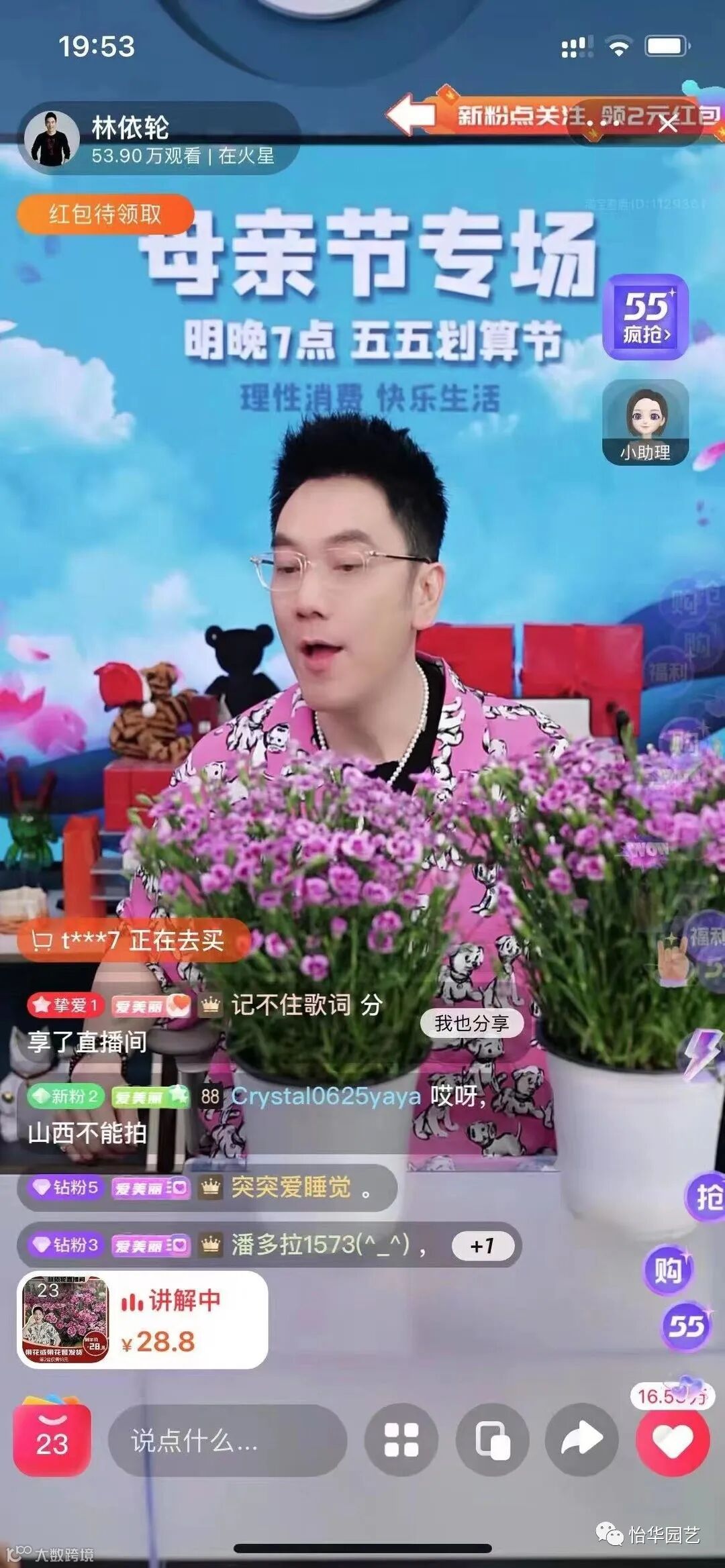 (直播大咖“林依伦”带货康乃馨初吻)