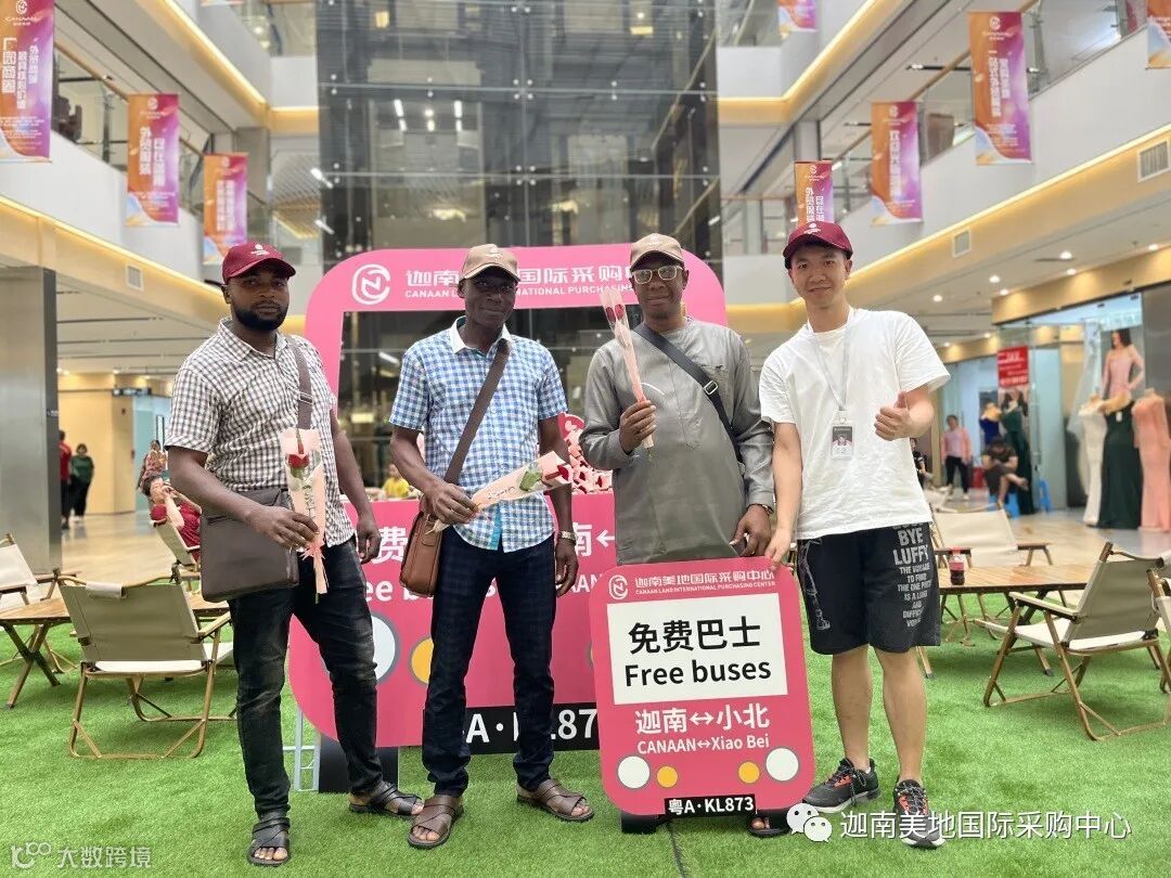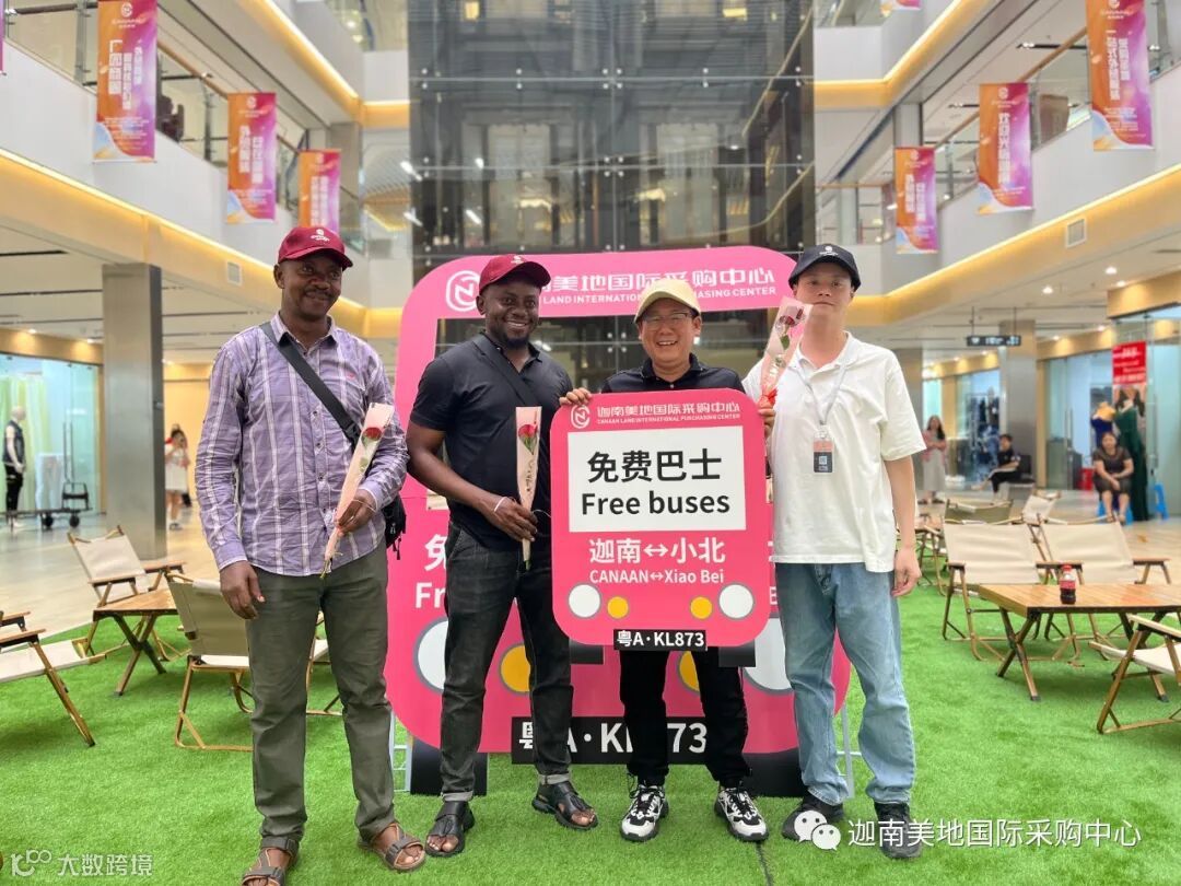 迦南为外贸采购商提供“免费巴士”服务,由翻译工作人员为其讲解,派发“巴士班车表”,让更多外贸采购商感受到迦南提供的便利服务。