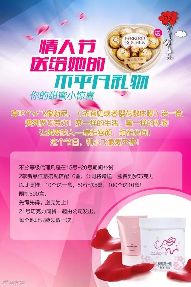 (洗面奶或者樱花敷体膜)送一盒费列罗巧克力!