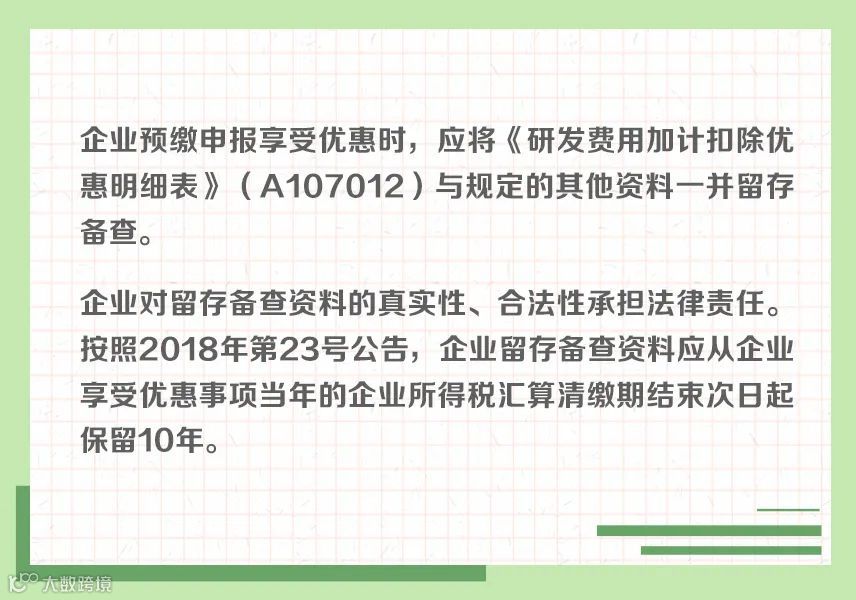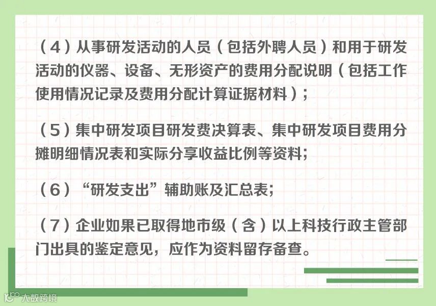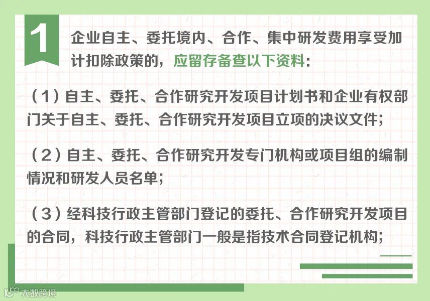 近年来,研发费用加计扣除政策持续优化完善,呈现出年年加力、步步扩围、层层递进的特点,对支持企业投入研发、鼓励科技创新起到重要作用。为帮助纳税人全方位学习了解相关政策规定,小编制作了“研发费用加计扣除政策系列图解”。今天带你了解:享受研发费用加计扣除政策的留存备查资料↓