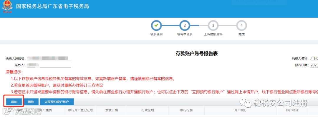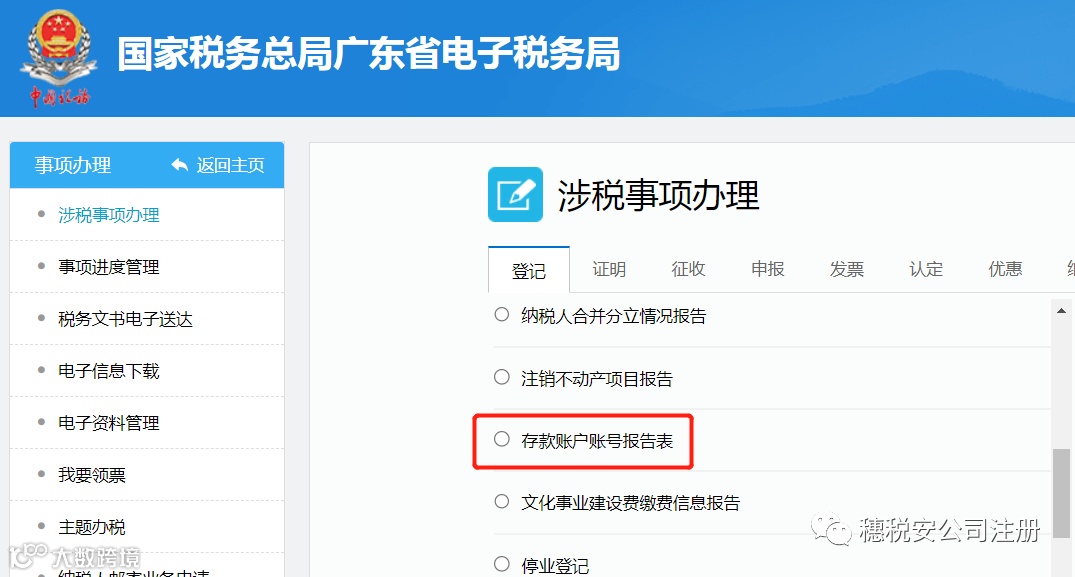 2.完成人民币账户备案及三方协议签订。办理路径:广东省电子税务局--我要办税--事项办理--涉税事项办理--存款账户账号报告表。