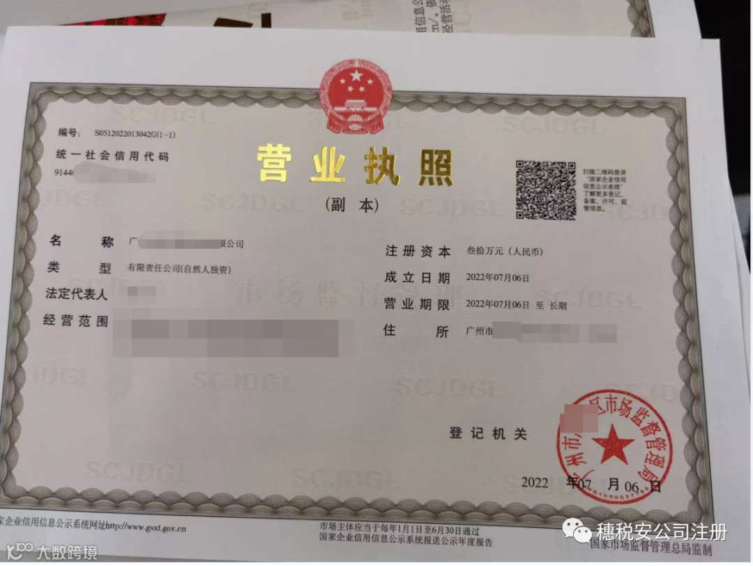在穗税安专业人员的配合帮助指导下,李先生很快就完成了商贸有限公司注册流程,于次日便拿到了营业执照,效率上让李先生十分满意。他评价说:穗税安以其效率和实力,让我本次公司注册进行的十分顺利,也让我拿到了广州黄埔区商贸有限公司的营业执照。先前我所遇到的地址挂靠问题,他们也很快便帮我解决掉了,最重要是穗税安代理公司注册的价格也不高,如若公司后续的一些财税业务交由穗税安来处理,更是能免费代理公司注册,性价比很高。