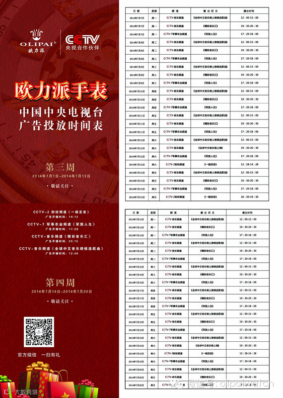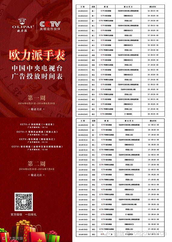 2014年,欧力派重磅出击,携手央视,将于2014年6月全新开播欧力派广告宣传片,完美诠释出高贵优雅的品牌理念,打造欧力派全新品牌形象。