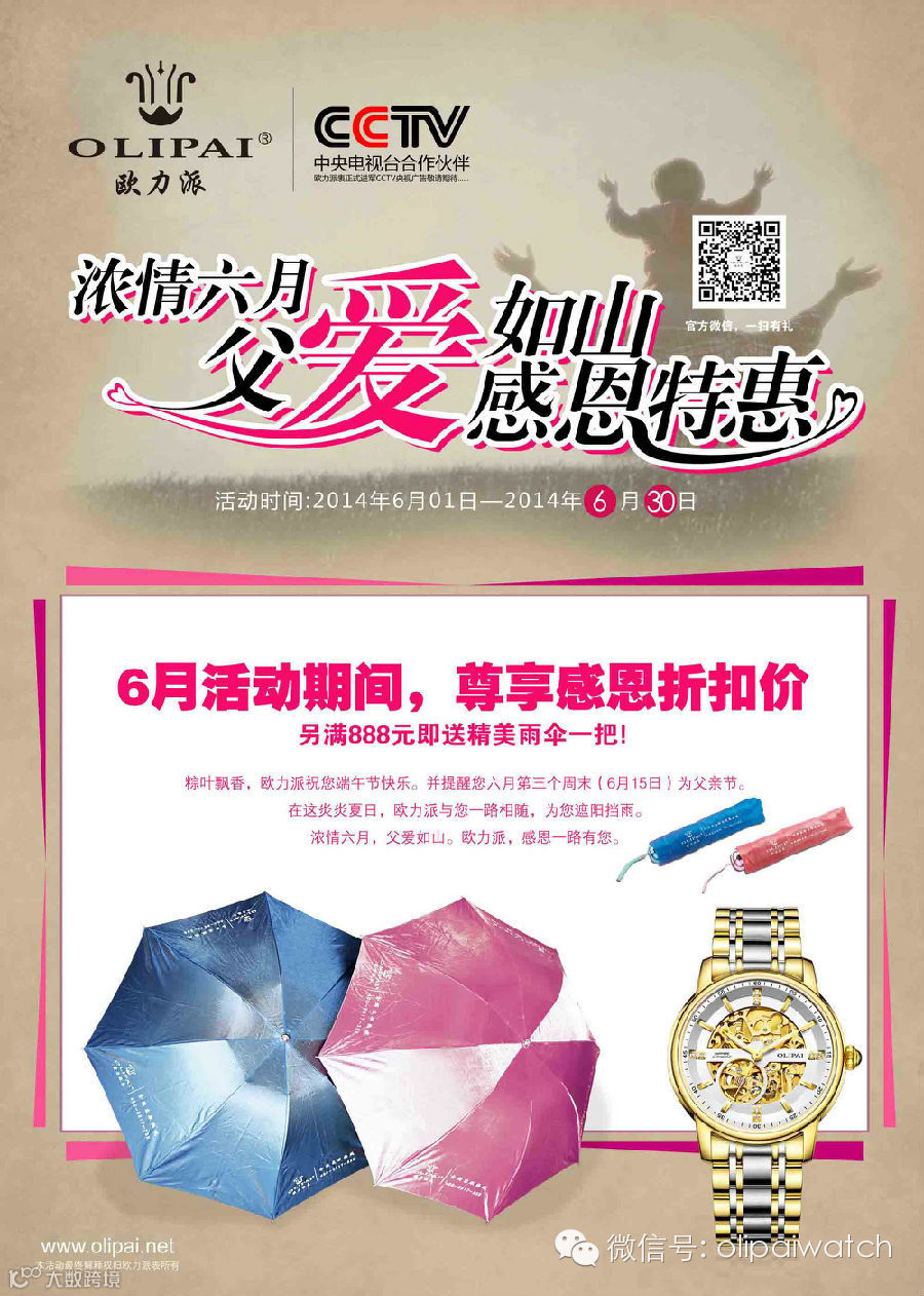 6月活动期间,全国欧力派专柜尊享感恩折扣价,及雨伞赠送!!!