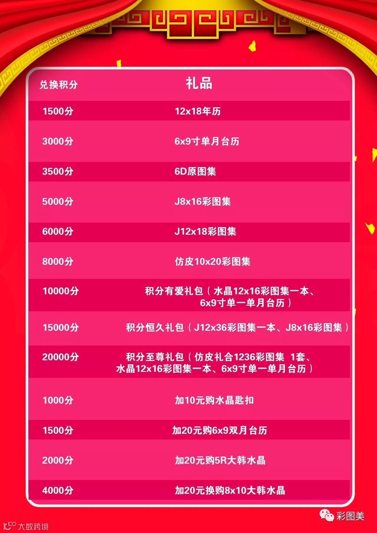 所需积分兑换礼如下: