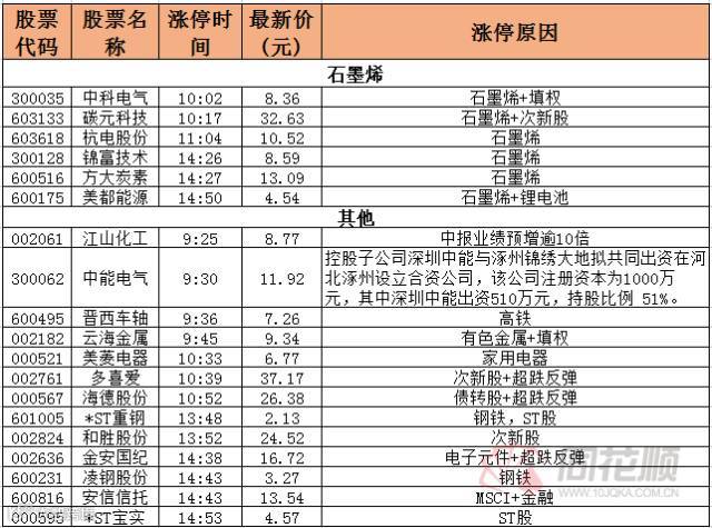 早盘中科电气率先封死2板,带动石墨烯板块再度高潮,碳元科技,杭电股份相继跟风涨停,受到华大基因过会的消息刺激,基因测序概念股小幅高开后冲高回落,次新股科锐国际率先封板,试图带动次新股氛围回暖,但随着蓝筹股持续拉升,次新股再度陷入低迷,科锐国际随即开板,午盘后一度翻绿。晋西车轴涨停,带动高铁股拉升,特斯拉和石墨烯板块小幅反弹,中科电气封死涨停。MSCI概念股继续表现强势,威孚高科,科大讯飞等个股相继补涨。临近午盘,填权股再度反弹,午后特斯拉,白酒,雄安,房地产,有色金属等板块大幅拉升。汉钟精机和万科A相继冲击涨停,凌钢股份封死涨停,带动钢铁股大幅反弹,但被砸开,尾盘安信信托封死涨停。