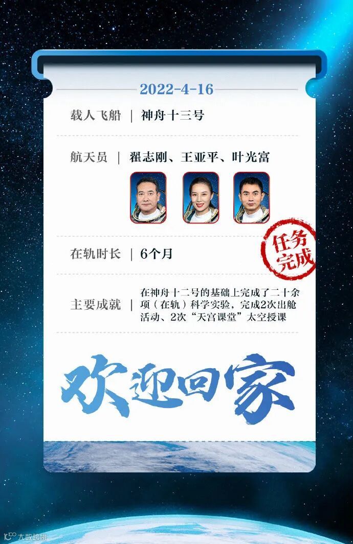神舟十三号,欢迎回家