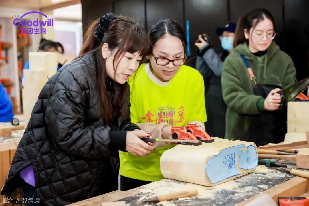 上午,木工活动现场,瑞因人凝神聚力,团结一致,以持续的专注和韧性,发挥工匠精神共同手作完成“Goodwill”的标志。