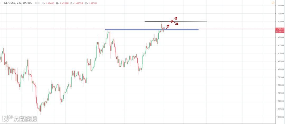 策略:企稳1.4250位置之上轻仓做多,有效突破1.4300位置并企稳再跟进多单操作。若是受阻于1.4300位置附近,则谨慎做空,注意控制仓位。(谨慎操作,请设置好止损线!)