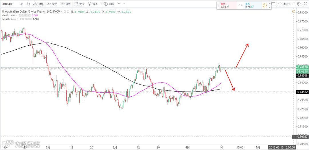 策略分析:今日重点关注0.7480区域企稳情况,看是否为真突破,为假突破则会重回震荡区间。