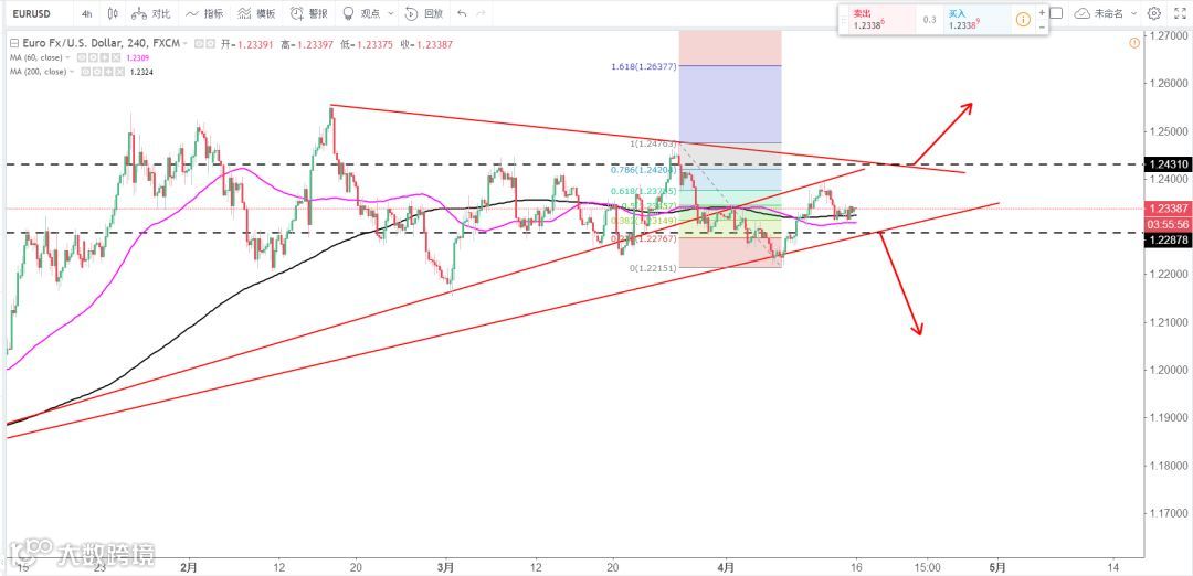 策略分析:美国等国空袭叙利亚之后,地缘局势引发的利好已经基本出尽,市场对晚间美国零售销售数据的预期比较乐观,本周还将迎来多位美联储票委的讲话,中线偏向鹰派的可能性也比较高,这可能会对金价产生一定的压制,不过仍然需要留意避险情绪的发酵。技术上,4小时中黄金目前处于震荡趋势中,从结构上的走势来看黄金已经进入上升阶段, 前期下跌趋势结构已经结束,当下反弹行情结束后或将继续以上行结构为主。