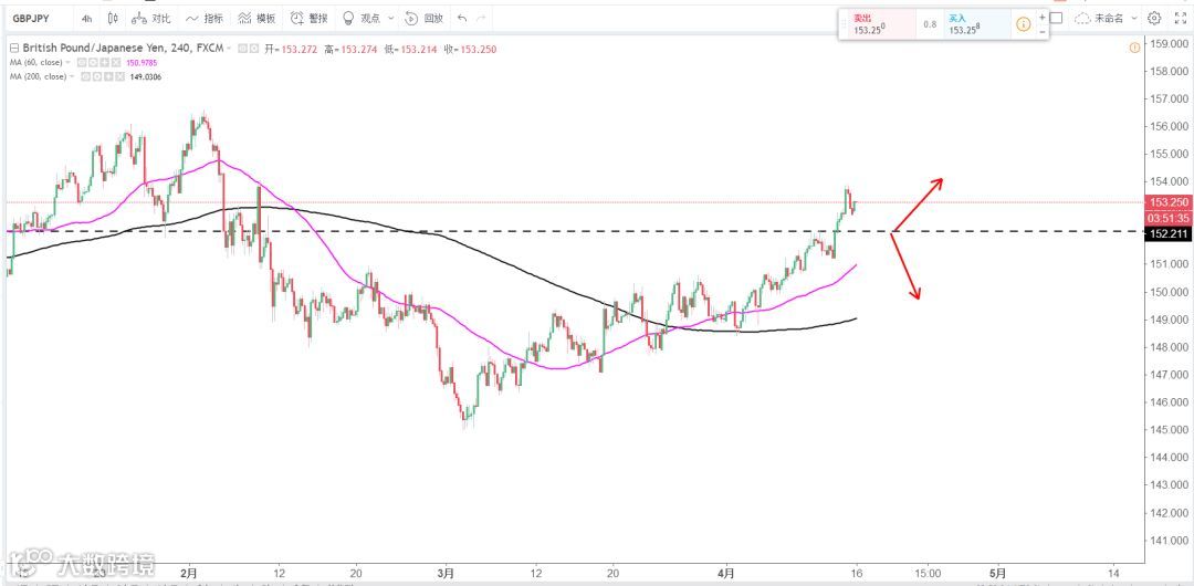 策略分析:日线级别多头强势,切勿盲目布局空单,前期高位重压区压力重重,关注下方支撑152.2区域企稳情况。