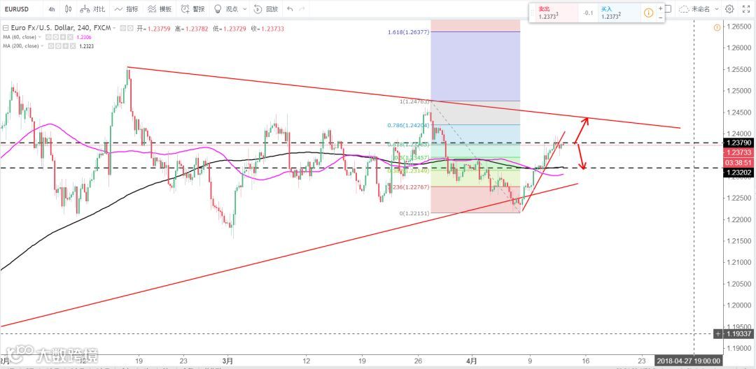策略分析:三角整理末梢 ,关注压力位1.2380区域即可,短线偏空。