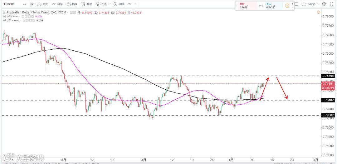 策略分析:2个月来底部大区间震荡,0.7480-0.7270区域,操作价值不大,等待突破后再做布局为宜。