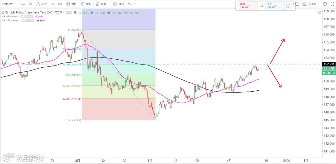 策略分析:短线回调震荡上行,关注上方0.618回撤压力位152.2,若无法突破,则预示回调结束将会延续下跌。