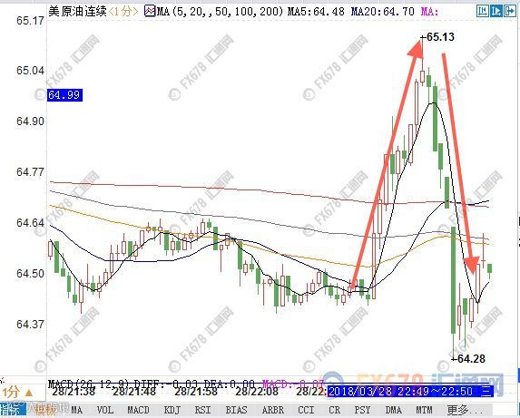 美国原油一分钟走势图: