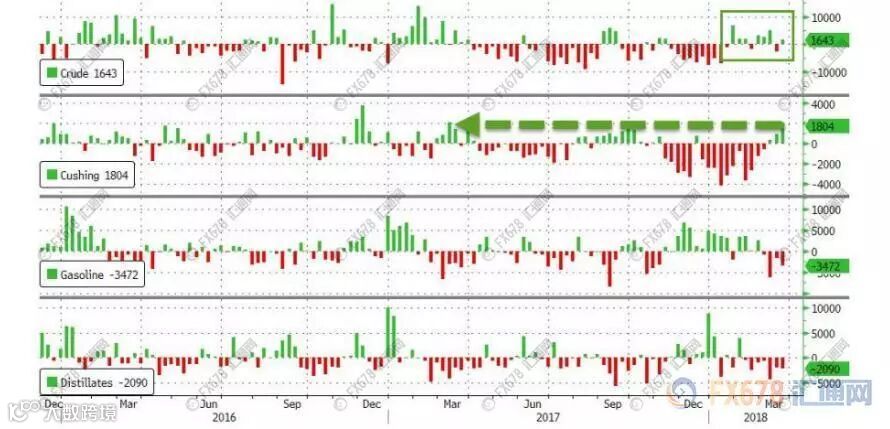 EIA报告显示,美国国内原油产量连续5周录得增长,美国精炼油库存变化值连续7周录得下滑;美国汽油库存变化值连续4周录得下滑。美国俄克拉荷马州库欣原油库存变化值连续3周录得增长,且创2017年3月17日当周以来新高。