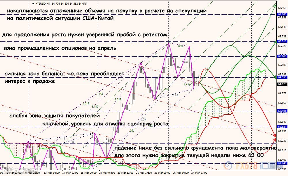 反之若油价重新站上65美元,后市则有望上冲65.80-66.50美元区间;但是4月份不少产业空头预计可能在该区间布局套保空单,油价更上一层楼的难度将明显加大;如果有幸上破66.50美元/桶,并且中美贸易关系能够继续趋缓,后市不排除来到67.70美元附近。
