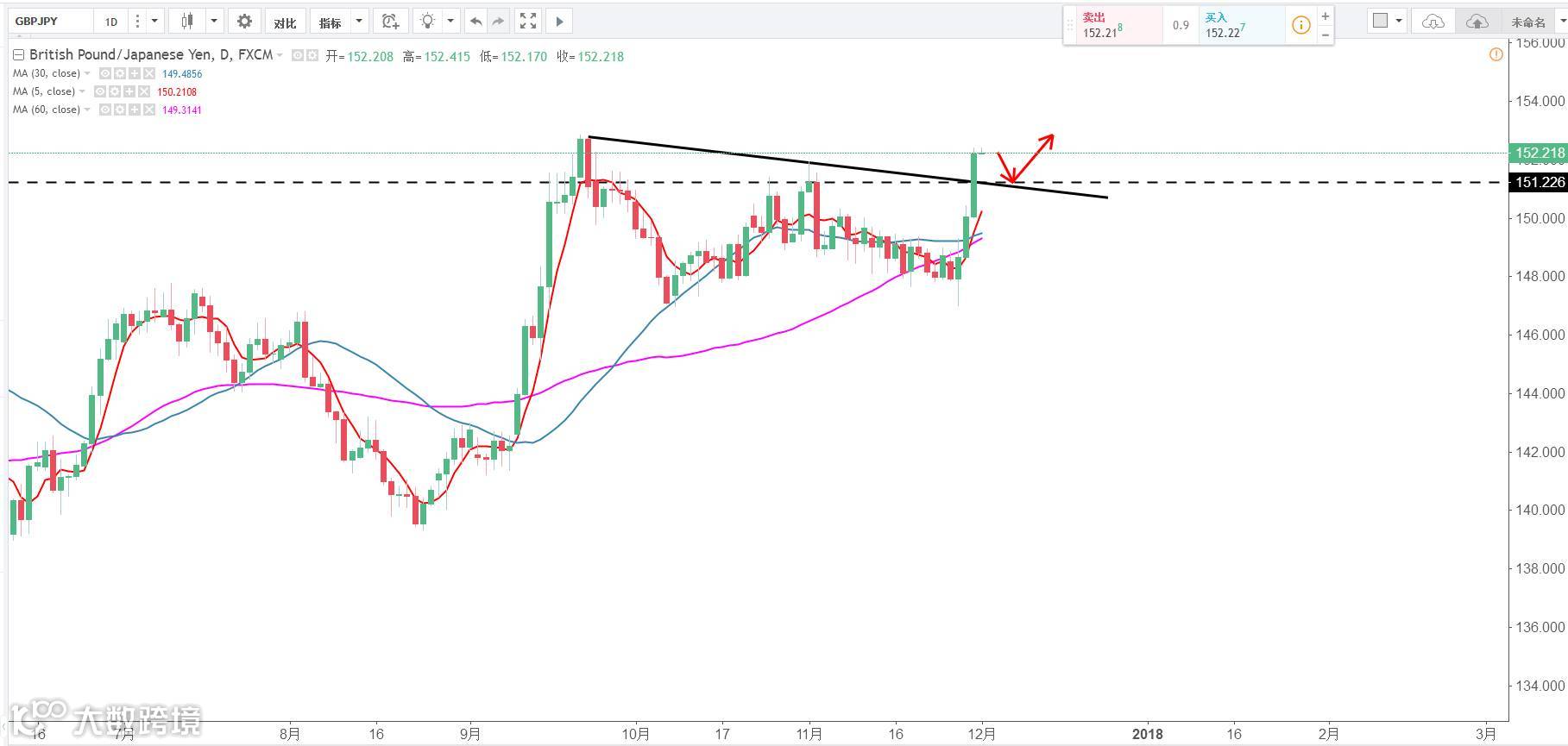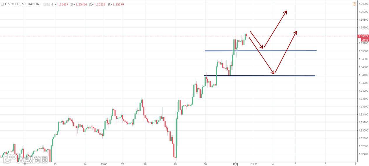 边界问题是欧盟提出的开始贸易磋商前必须取得“足够进展”的三大先决条件之一,因预计英国就与北爱尔兰边界问题接近与欧盟达成协议,英镑走强。英国脱欧的乐观情绪继续支撑着英镑,英镑因此得到了提振。目前英镑兑美元冲高后小幅承压,关键看1.3500附近的支撑,若价格下破1.3500,下面关键看1.3438附近的支撑。前期突破1.3500位置已经为后续的上涨铺好了道路,当前的思路以多为主。