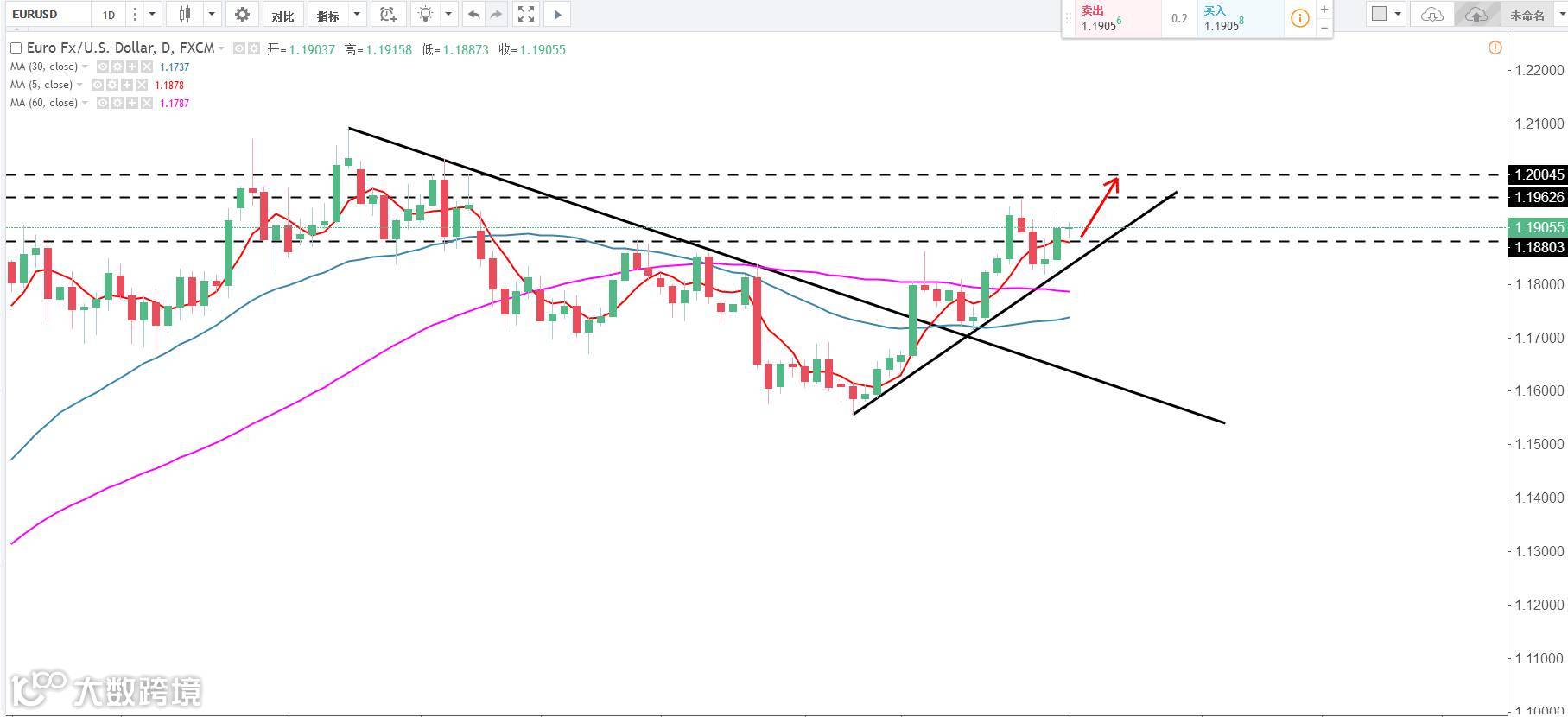 回踩1.1880做多,止损1.1850,目标1.1960-1.2。(谨慎操作,请设置好止损线!)