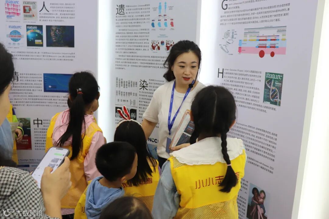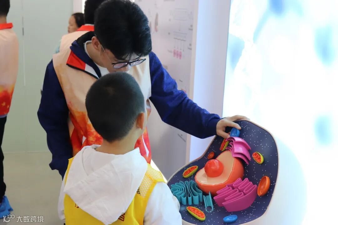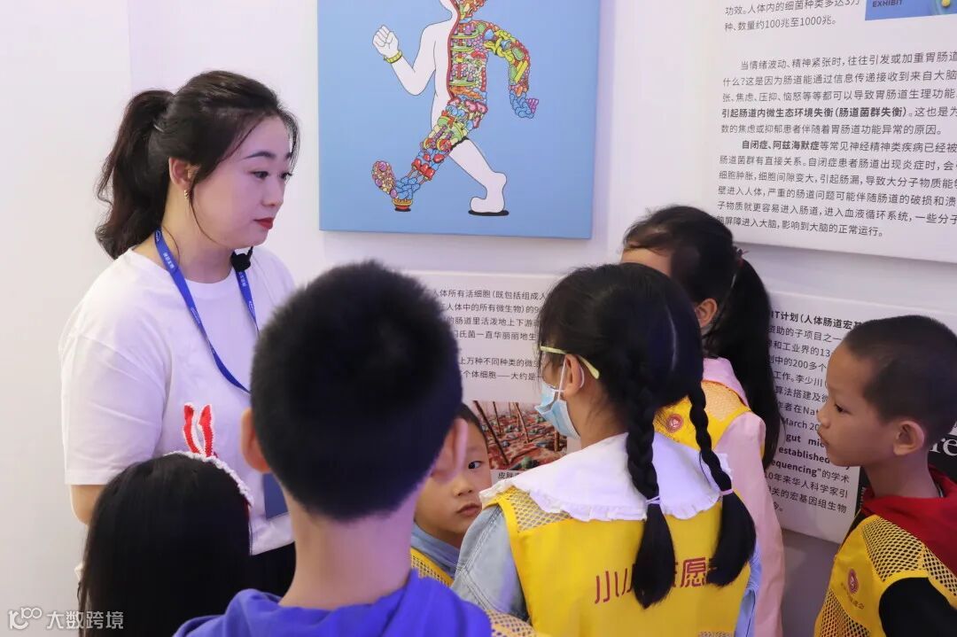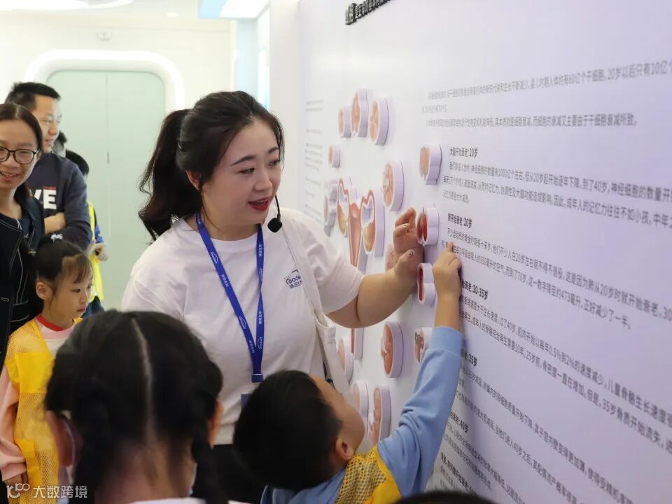 青春靓丽的讲解员姐姐带领亲子家庭成员和志愿者们共同走进瑞因科普展厅,细心地从不同角度给大家科普基因密码,细胞奥秘,带大家重新认识与日常生活息息相关的微生物世界。