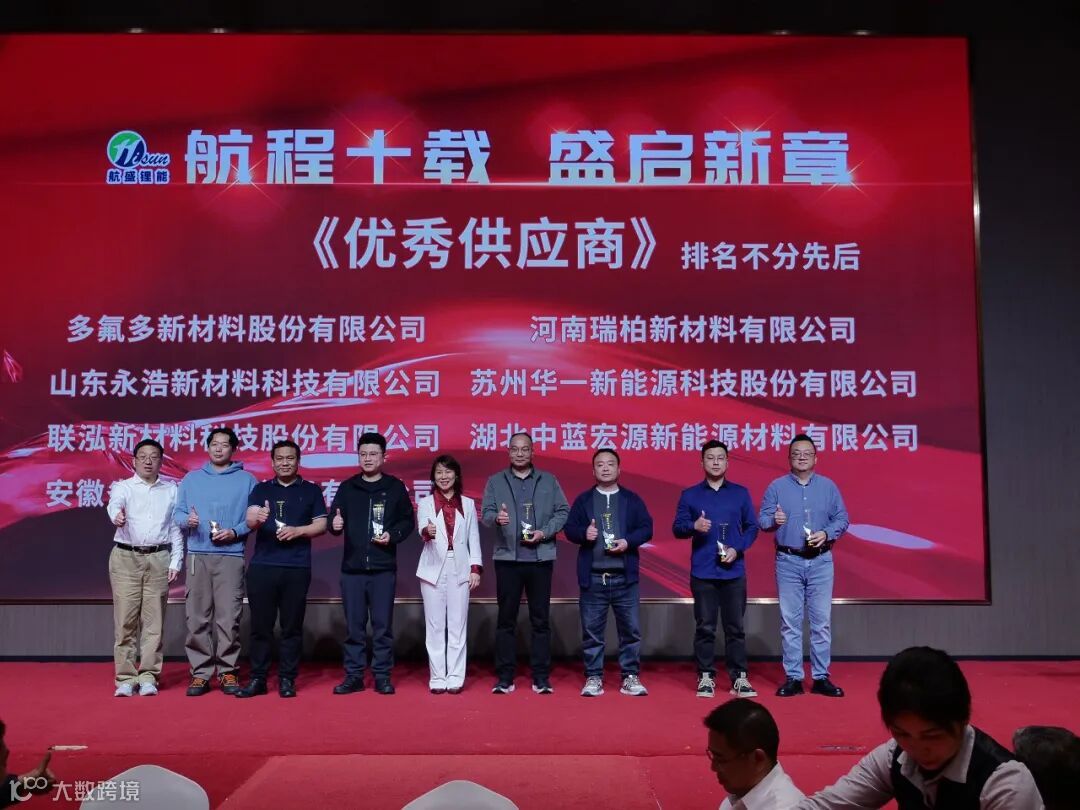 十年并肩,感恩同行。庆典现场表彰了多氟多新材料股份有限公司、苏州华一新能源科技股份有限公司、山东永浩新材料科技有限公司、河南瑞柏新材料有限公司、联泓新材料科技股份有限公司、湖北中蓝宏源新能源材料有限公司、安徽省谱诺药化设备有限公司等优秀供应商。十年同心,一路同行,衷心感谢各位合作伙伴始终如一的信任与鼎力支持,正是这份同心同向、携手共进的坚守与付出,共同铸就了航盛锂能今日的发展格局。