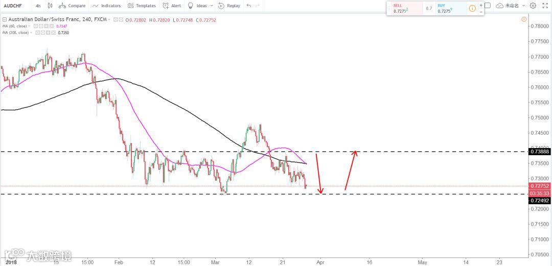 策略分析:底部大区间震荡,操作上高空低多即可,区间0.7390-0.7250。