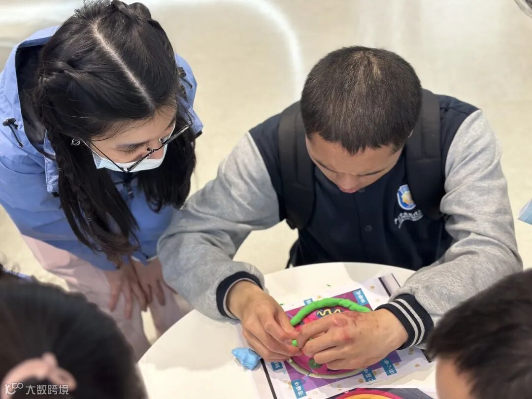 [志愿者陪伴孩子们制作细胞模型]
