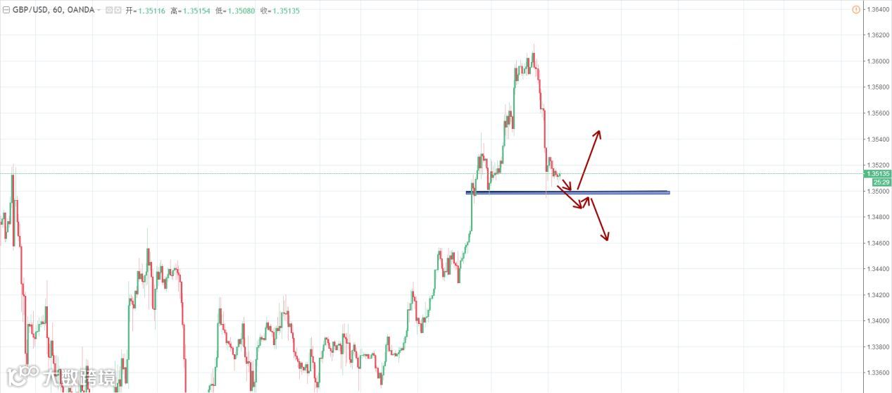 策略:关注1.3500位置,在此位置受阻做多,放小止损,如果有效跌破1.3500位置可以轻仓做空。(谨慎操作,请设置好止损线!)