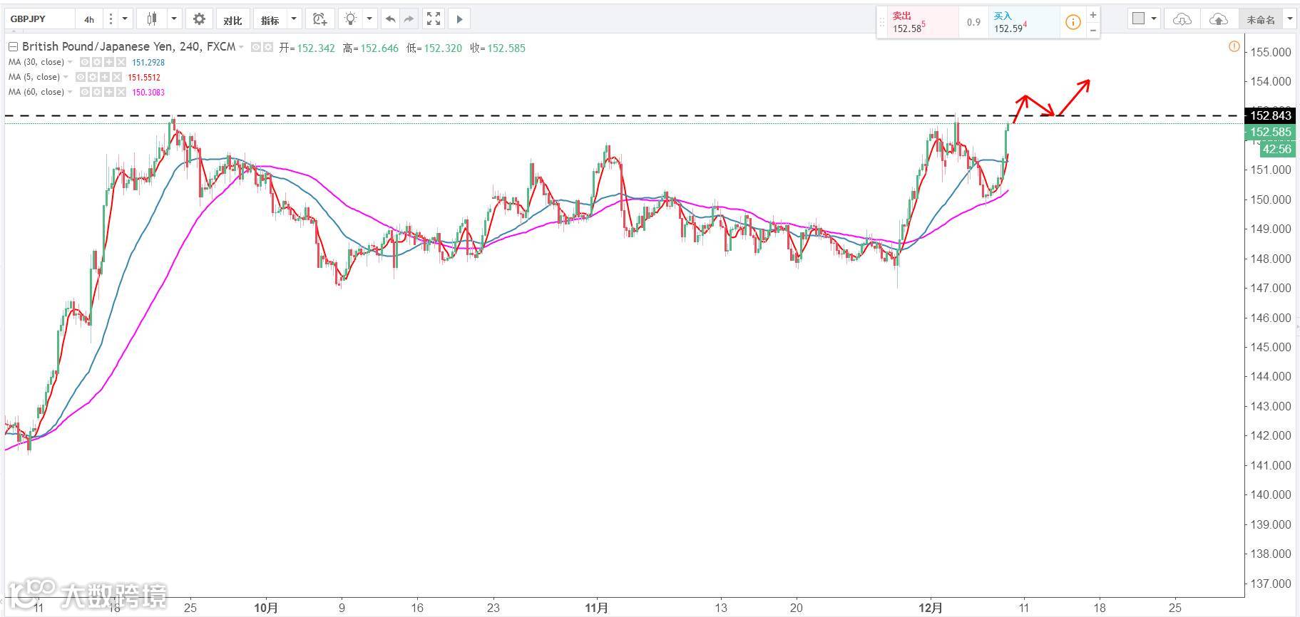 交易策略:观望,上方压力153,突破回踩后再布局多单。(谨慎操作,请设置好止损线!)