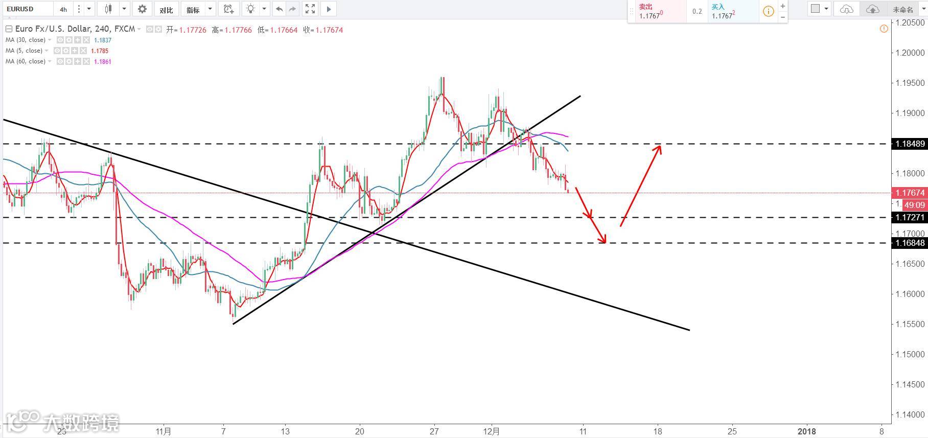 技术点评:4H级别继续震荡下行,暂时没有企稳迹象,原则上逢高做空,今日关注下方2个支撑1.1725以及1.1685。