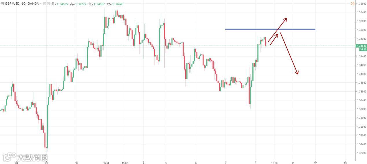 交易策略:在1.3500附近见明确遇阻信号做布空,目标1.3440-1.3400;如果突破可顺势轻仓布多,放小止损。(谨慎操作,请设置好止损线!)