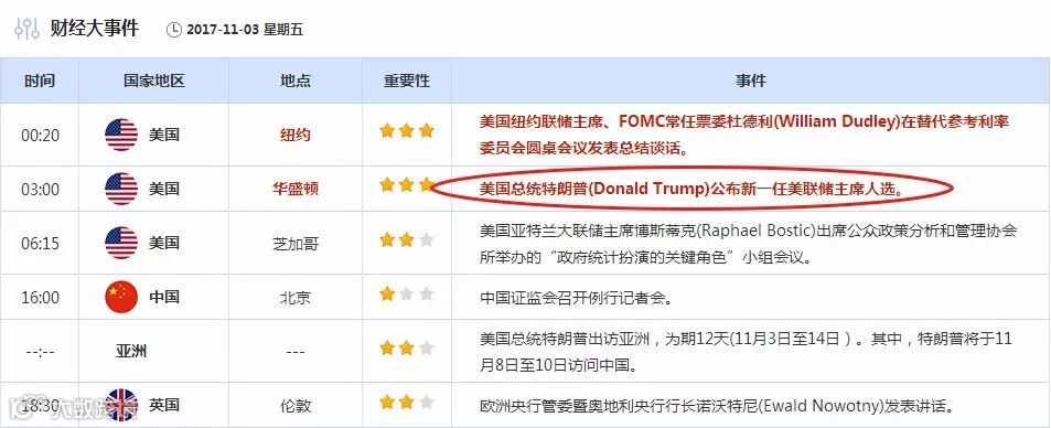 4、03:00美国总统特朗普(Donald John Trump)公布美联储下任主席提名人选。