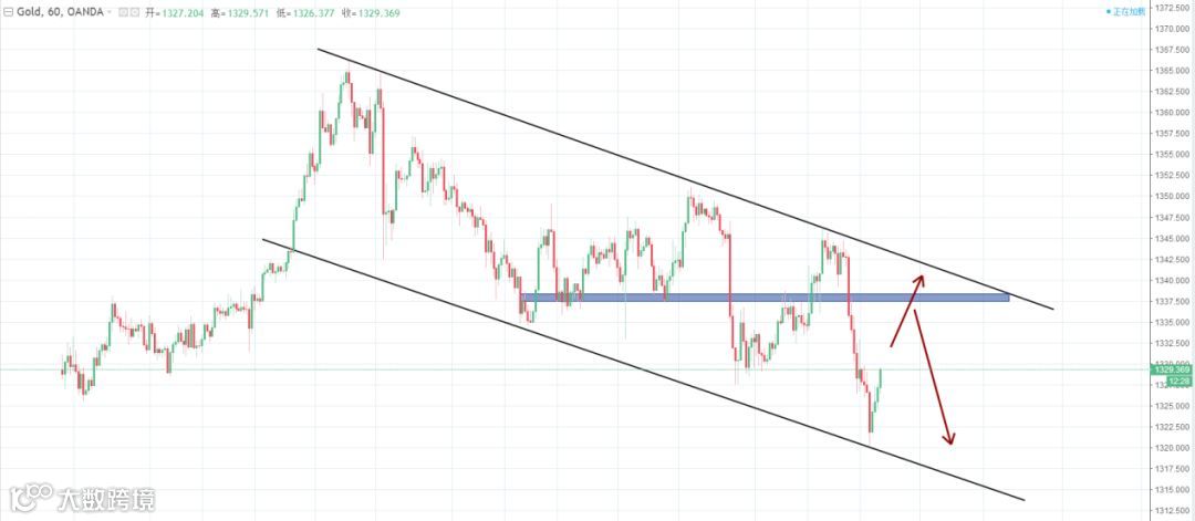 策略分析:美股探底回升,避险情绪有所降温,削弱了黄金的避险需求,而市场对美联储年内加息四次的预期有所升温,美元指数反弹动能仍存,黄金ETF持仓大幅下降。接下来重点关注,美联储官员讲话和美元走势和避险情绪变化。技术上,在日线图中金价维持在高位震荡整理,短期上行动力不足。虽然美股周一暴跌,但金价受到的支撑有限,金价仍然有望回落测试日线图60日均线附近。4小时图中金价运行在一个下行的通道中,晚间金价回落在通道下轨位置得到支撑,金价小幅反弹,若金价反弹受阻则可能延续下行态势。小时图中金价运行在下行通道中,目前金价呈在低位反弹,短线有测试通道上轨1338位置压力的需求,下方关注1320位置的支撑,若金价跌破此位置的支撑,则有进一步下行的风险。