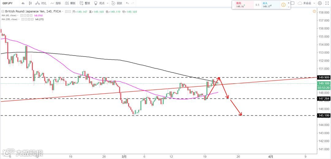 策略分析:英国2月份通胀放缓幅度超过预期,令英国央行可能于五月加息的前景蒙上阴影,英镑兑美元下跌小幅下跌。此前英国与欧盟之间达成脱欧过渡期协议,市场预计,这将令脱欧前景不确定性降低,为英国央行加息扫清障碍。技术上,英镑兑美元4小时级形成上升通道震荡上行,汇价最高触及到1.4100附近的大关口,受阻于上升通道上轨阻力位后遇阻回调下行至1.4000附近的支撑,目前英镑的主要格局是突破整理区间后的高位震荡,需要关注的是近期各大央行的利率决议,同时在技术面来看1.4100附近是英镑目前面临的关卡位置,能否被突破后继续上行还是围绕阻力关卡形成一些顶部形态都是近期关注的要点。