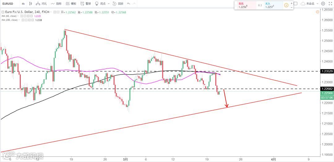 策略分析:昨日大阴线坐下打穿近期支撑,今日逢高做空 上方压力1.2270区域,短线偏空 看三角形末梢收敛等待大方向出现。