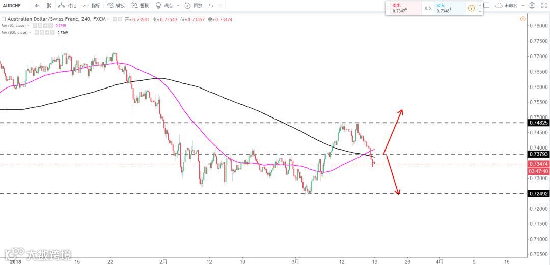 策略分析:大区间震荡,短线方向不明,0.7380为多空分水岭,大区间0.7480-0.7250区域,高空低多即可。
