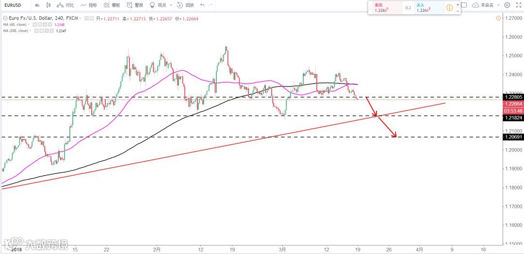 策略分析:4H级别短线空头排列确立,下方看向目标1.22区域,原则上逢高做空切勿盲目布局多单。