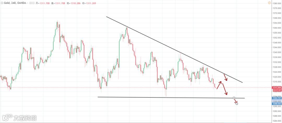 策略分析:上周五美国工业产出数据和消费者信心指数表现乐观,市场普遍预期美联储本周可能加息,美联储主席鲍威尔的讲话也有偏向鹰派的可能,市场对本周的耐用品订单数据预期比较乐观,这都可能对金价形成压制,接下来重点关注避险情绪的变化。技术上,受美元指数走强影响,金价一度跌破1310关口,目前金价稍有回升现交投于1310.65左右。整体走势比较疲软,金价暂时处于震荡下行走势,短期将继续试探1310位置的支撑,如果回调受阻或是跌破1310位置的支撑,料金价将延续跌势。在4小时图中,金价形成三角形结构,金价获得三角形下轨线的支撑,但短线空头力量仍然比较强,均线维持向下运行,可能会打压黄金的走势。黄金可能会三角形内来回整理,但短线走势转弱,料后市金价将会继续下探,当前思路以空头为止。