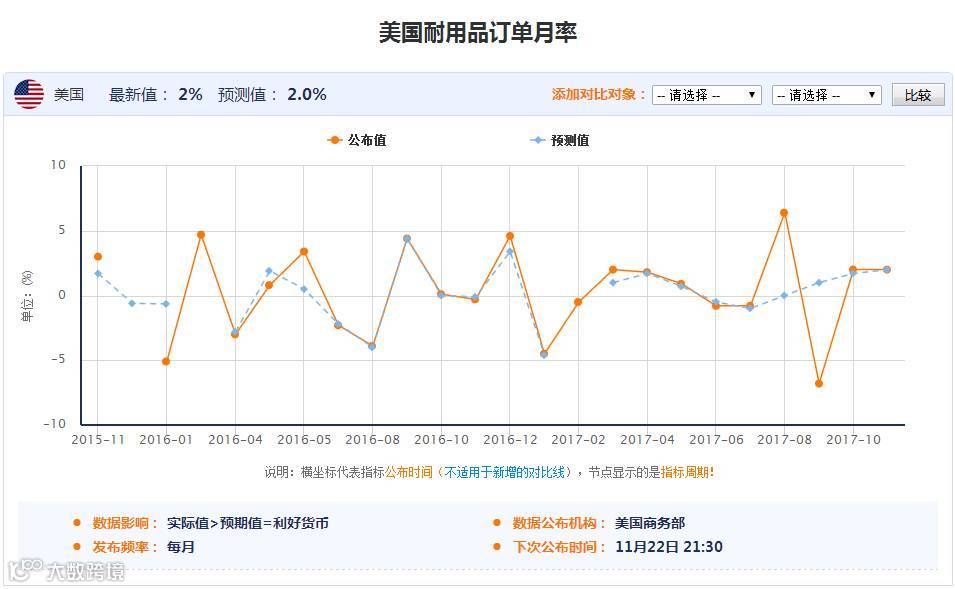 21:30 美国 10月耐用品订单月率初值(%)
