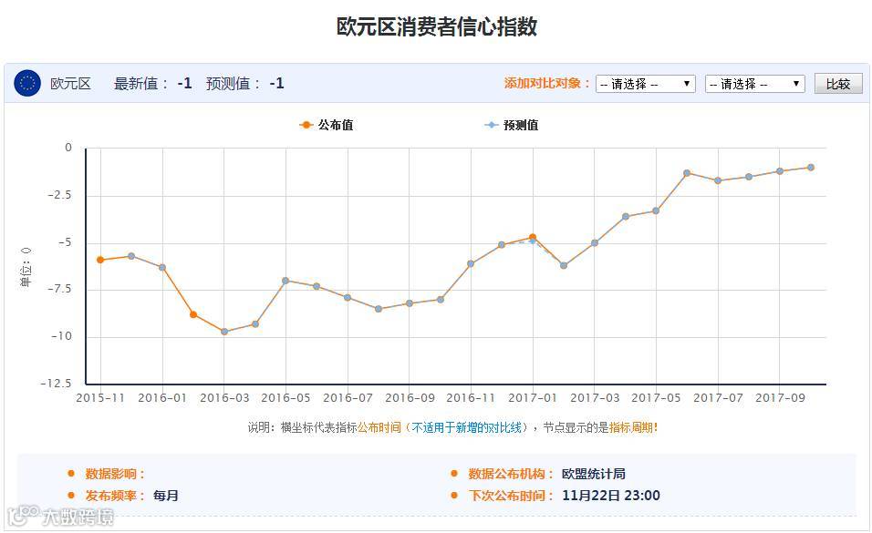 23:00 欧元区 11月消费者信心指数初值